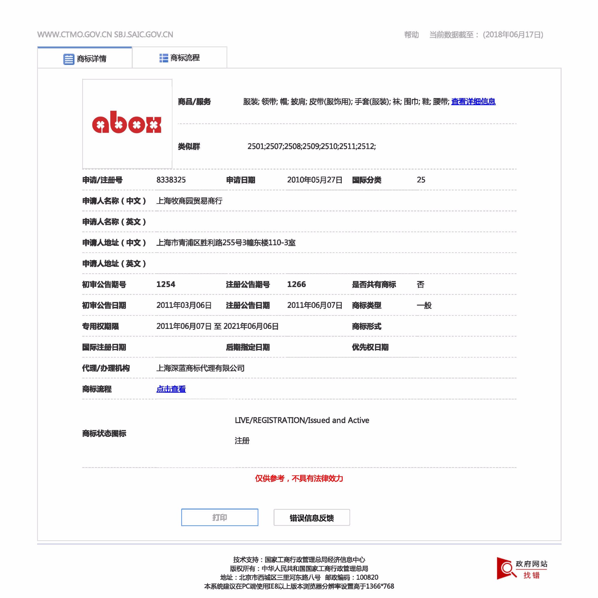商標注冊地址:上海市青浦區(qū)勝利路255號3幢東樓110-3室。